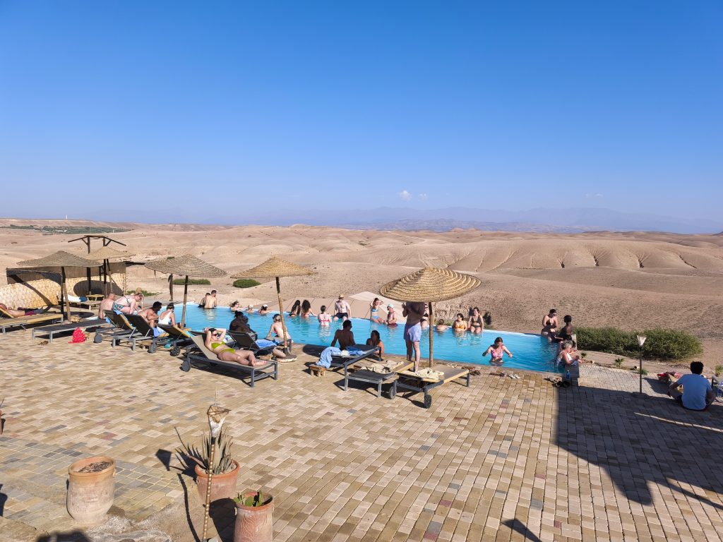 Si vas con buen tiempo (la mayor parte del año) te podrás bañar en una piscina disfrutando de una cerveza y de las vistas del desierto, lo que es inigualable.