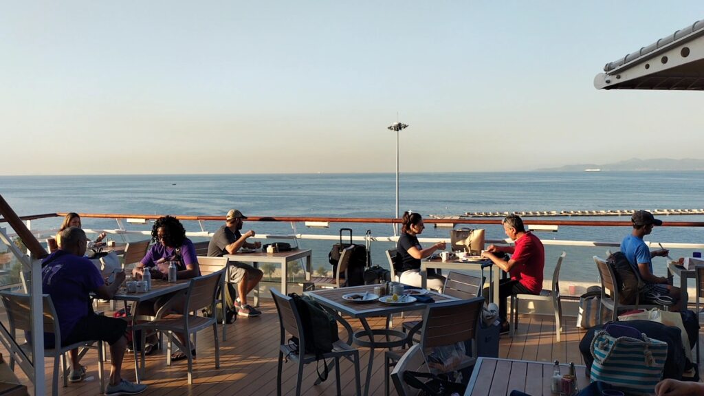 Los horarios de los restaurantes de la mayoría de los barcos, tienen horarios fijos y no se suelen adaptar al horario de las excursiones de las escalas, por lo que te puedes encontrar alguno de ellos cerrados a tu regreso al barco. En cualquier caso, no hay que preocuparse porque suele haber siempre alguno abierto con comida disponible a casi cualquier hora del día.