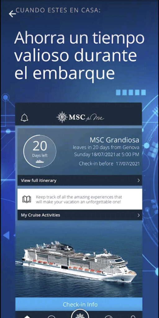 Dicha APP además suele dar una información completa del itinerario, actividades dentro del barco, planos del mismo, horarios de restaurantes, etc, Ten en cuenta que durante el viaje funciona en el barco aunque no hayas contratado wifi.